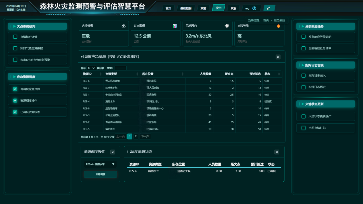 平台集成地理信息系统,在火灾发生后,可结合火场位置、周边环境等信息,辅助制定应急处置方案,包括应急响应、扑火力量调配等内容。同时,支持火场信息的汇总与展示,为指挥决策提供支撑。